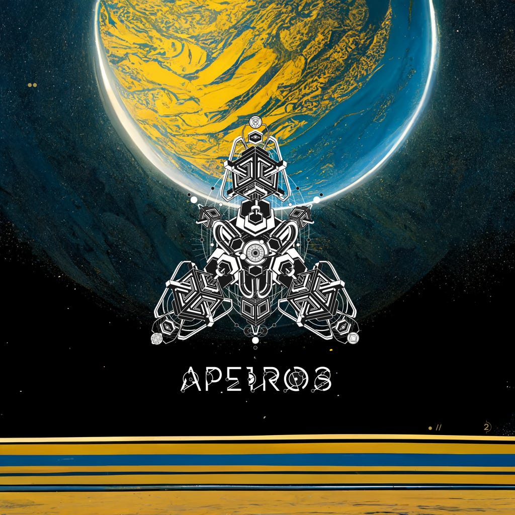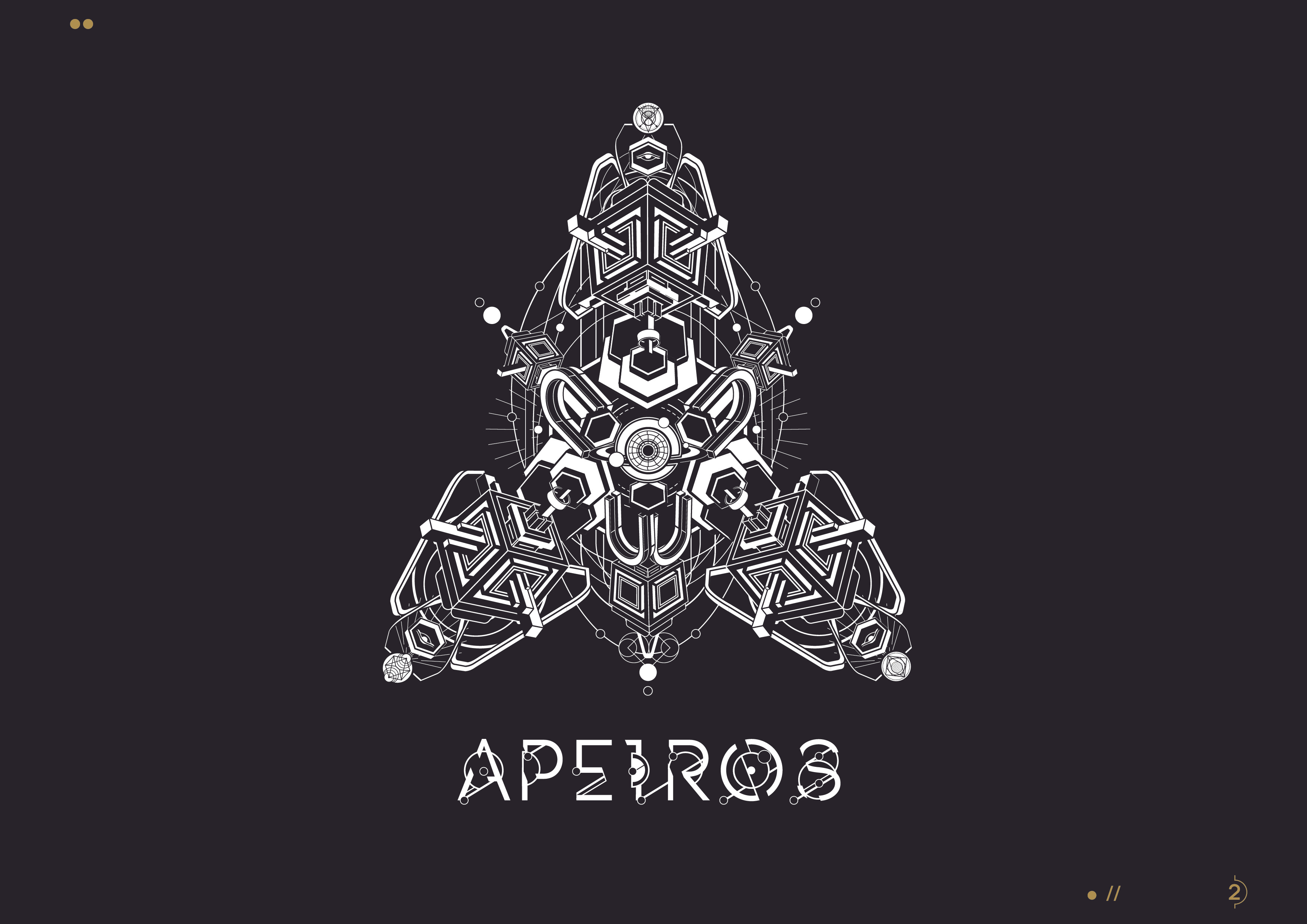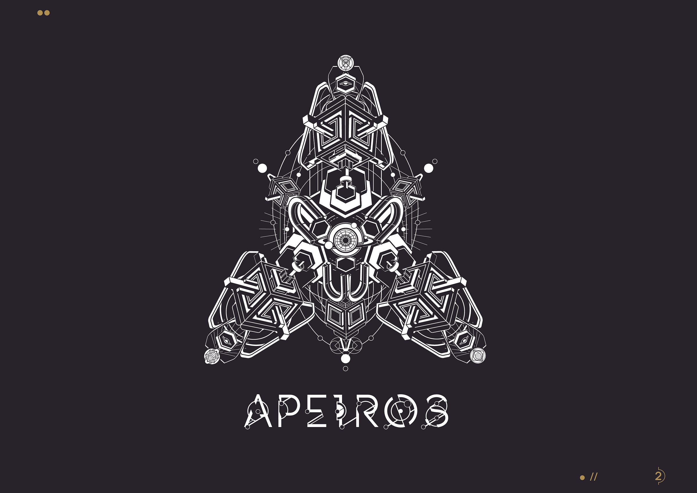 “They encapsulate the concept behind Apeiros, combining sacred geometry, afrofuture-tech, alchemy and mysticism. The first, features more of an advanced line-art style which can be affiliated to neo-retrofuturism and tribalism, while the second one explores a more modern approach of such visual concepts, inspired by fractal geometry.”